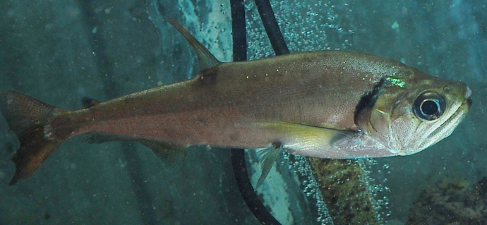 胸鰭に黒い点があります。