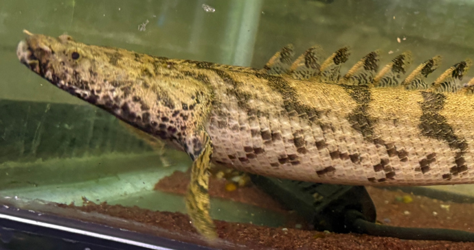 鱗のギラギラ感が魅力な種類の古代魚です